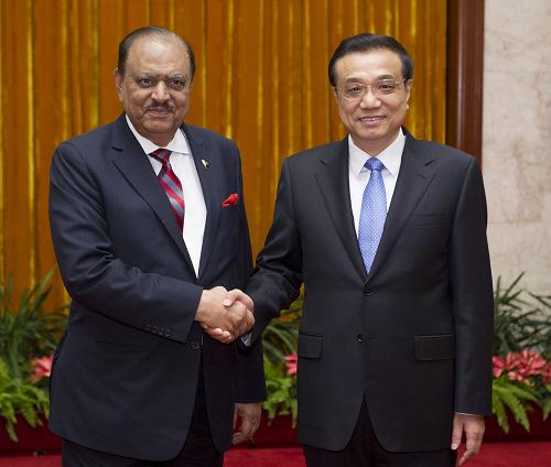 国务院总理李克强20日下午在人民大会堂会见巴基斯坦总统侯赛因。