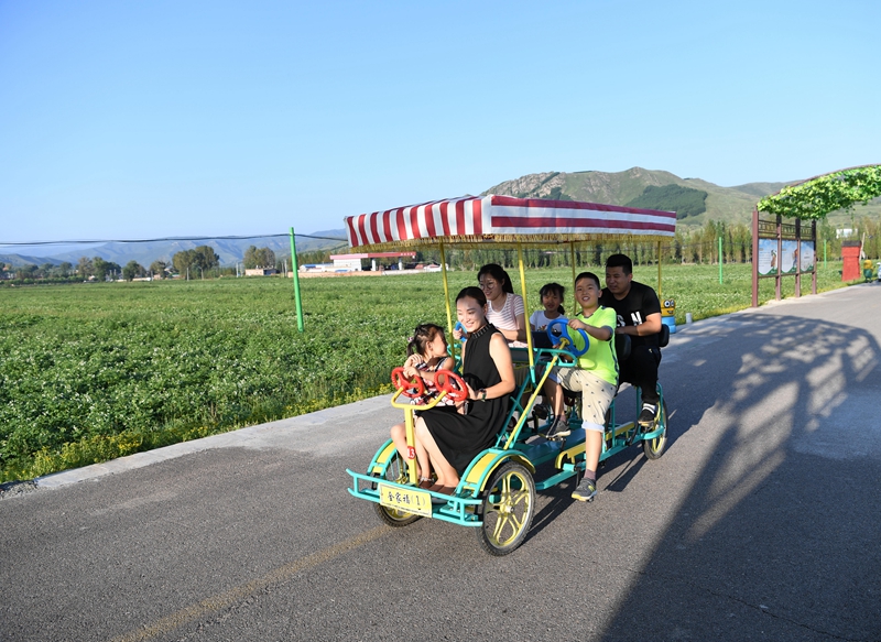 在花海中拍照留念,在大自然中呼吸新鲜空气……依托土豆花开满山坡的花海景致,山西省岚县已经举办了9届“土豆花开了”旅游文化月活动。