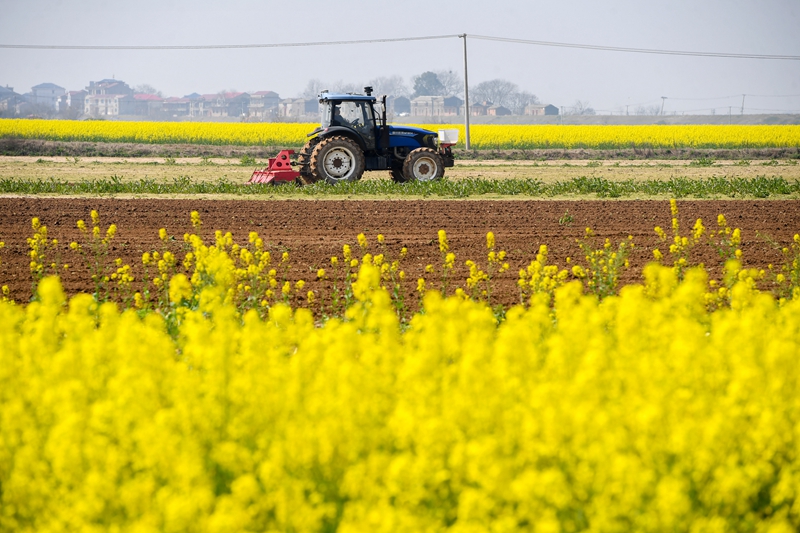 2024年3月12日,江西省丰城市尚庄街道泉塘社区赤岗村村民在驾驶农机翻耕田地。新华社发(周亮 摄)